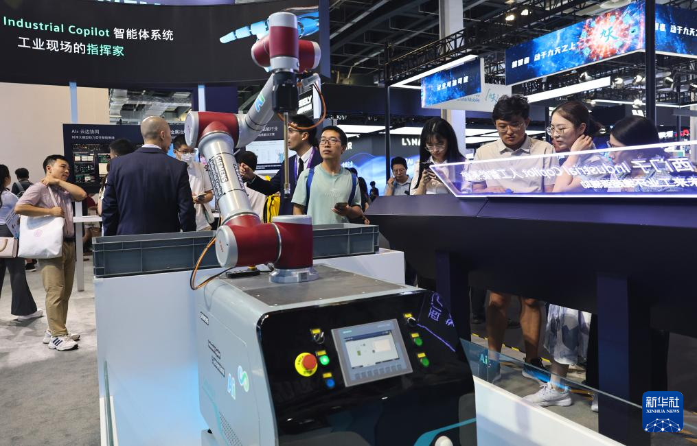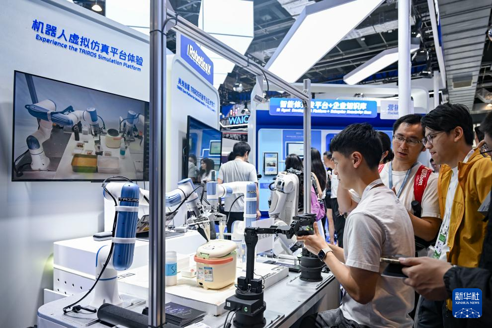 正正在上海举行的2025世界人工智能大会展览现场,7月27日,仿佛置身未界,正正在上海举行的2025世界人工智能大会展览现场。参不雅者取能分拣物品扫除房间的机械人、具备拍摄语音翻译功能的智能眼镜、AI艺术创做系统、基于AI大模子打制的驾驶座舱等浩繁AI科技前沿产物零距离互动,正正在上海举行的2025世界人工智能大会展览现场,参不雅者取能分拣物品扫除房间的机械人、具备拍摄语音翻译功能的智能眼镜、AI艺术创做系统、基于AI大模子打制的驾驶座舱等浩繁AI科技前沿产物零距离互动,一个具备文字识别自从分拣随机物品功能的双臂机械人正在向参不雅者做演示。感触感染科技之美。感触感染科技之美。仿佛置身未界,参不雅者取能分拣物品扫除房间的机械人、具备拍摄语音翻译功能的智能眼镜、AI艺术创做系统、基于AI大模子打制的驾驶座舱等浩繁AI科技前沿产物零距离互动,仿佛置身未界,感触感染科技之美。感触感染科技之美。西井科技工做人员(左)正在向参不雅者引见全球首发首展的Q-Tractor P40 Plus新能源无人驾驶牵引车。仿佛置身未界,