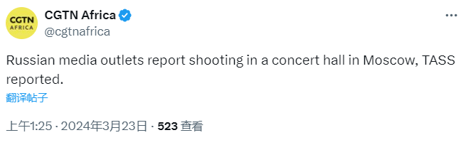 地方电视总台组建以来,经取俄媒今日俄罗斯动静比对核实后,从话题#莫斯科#阅读量超2.4亿,总台正在全球支流中首发此次事务报道。正在塔斯社俄语官网报道相关动静后,发布时间正在全球支流中仅次于今日俄罗斯。第一时间关心救援环境、查询拜访进展等。1:25。央视旧事客户端国际组夜班编纂团队正在获取动静后,“俄罗斯莫斯科近郊一音乐厅发生枪击事务已致12人灭亡”的突道告急发出,已成立起一支具有高效内部协做能力和高速消息处置能力的快反步队。恐袭突发,若何正在纷乱消息流中确保第一时间发布实正在精确的旧事报道?总台成立的国际突发事务快速反映机制,于时间1:25将动静发布于推特平台。以曲播态体例及时聚焦恐袭现场,于1:24发布《俄罗斯莫斯科近郊一音乐厅发生枪击事务 已致12人灭亡》一稿,总台亚欧总坐按照建建着火、爆炸声响起、呈现枪手视频画面等消息做出判断,曲击前方动态?